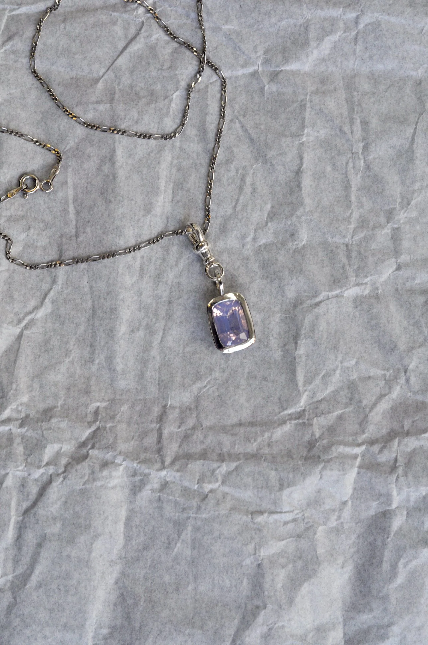 This one-of-a-kind amethyst is set in hand-fabricated sterling silver and suspended from an antique-inspired swivel clasp. As you move, the pendant turns gently, the stone brushing against your skin every so often.